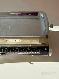 Bilancia da cucina vintage tedesca Stube, prodotta negli anni '50 o '60 Presenta una base in smalto color crema, un piatto di pesatura cromato e dettagli in smalto nero La bilancia ha una capacità di pesatura massima di 12 kg Include la funzione "feintarierung", che consente una regolazione fine e la compensazione della tara