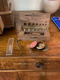 Bilancia da farmacia di precisione Proveniente da Studio Medico fi Milano Primi ‘900 Teca in ottime condizioni Presente anche pesi completi e certificato originale L cm 38 Profondità cm 19 H cm 40 Non spedibile-zona Novara