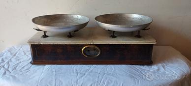 bilancia con due piatti e relativi pesi e macinino antichi vendo in blocco