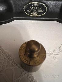 Misure cm 29x 10 H18 cm in metallo e ottone con 5 pesi …1 -200 gr/1-100 /1 -50/1-20/1-10 marca the Salter staffordshire