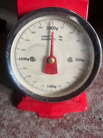 Bilancia retro’ da cucina meccanica con piatto in metallo. Ideale per pesare ingredienti con precisione.