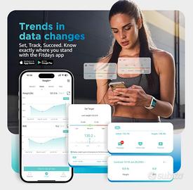 Bilancia Pesapersone Digitale Percentuale di Grasso 8 Elettrodi, Piattaforma Grande, Analizza 28 Elementi della Composizione Corporea, BMI, Bilancia Intelligente da Bagno Sync App, 180 kg