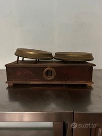 Bilancia d’epoca con piatti in ottone e pesi annessi Da revidionare e restaurare