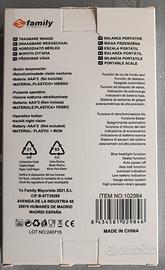 Bilancia elettronica portatile Family, ideale per pesare oggetti fino a 50 kg. - Alta precisione (0,01 g). - Display digitale LCD. - Funzione tara. - Design compatto e leggero. - Gancio per un facile utilizzo