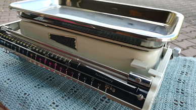 Bilancia pesa neonati e da cucina anni 60, portata max. 10kg. In ottimo stato senza ruggine. Solo ritiro a mano, dopo presa visione