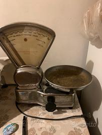 Bilancia anni 60, funzionante con piatto estraibile e manopola per cambio peso oltre il kg.