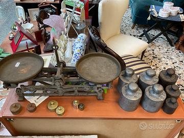 Bilancia vintage per generi alimentari in ghisa con piatti contrapposti senza pesi. L: 50 cm P: 20cm Visibile presso la nostra bottega in via Zara, 22 - Trento -