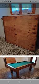 biliardo fine anni 90, come nuovo, Verde in begno. completo di doppie palline anche numerate, molte stecche. porta stecche, gesso e porta gesso sospeso. venduto da rivenditori solo il biliardo a 3'140 . qui e' compreso di tutto con copertura in legno per farlo diventare tavolo, con copertura di panno grigio.