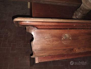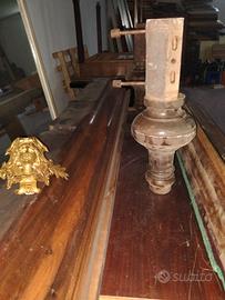 Biliardo completo primi ‘900, con bocchette in bronzo dorato, in noce nazionale massiccio, dimensioni 165 x 270 cm. Piedi torniti, pietra di lavagna intatta. Completo di boccette e birilli. Da cambiare solo il panno verde del piano.