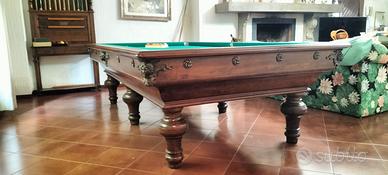 Biliardo d epoca 6 buche finemente incise, centenario dell azienda De Agostini di Torino completo di stecchiera e accessori vari, palle e tutto l occorrente. Pezzo unico. Escluso trasporto, svendo.
