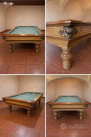 Bellissimo biliardo, perfetto in ogni particolare, lavagna alta, panno perfetto. Completo di accessori