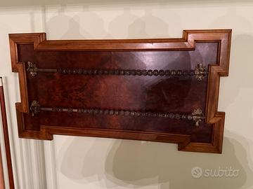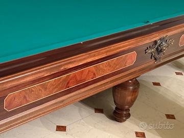 Vendesi splendido tavolo da biliardo firmato Etrusco, sinonimo di eccellenza artigianale e precisione tecnica. Il tavolo è stato utilizzato pochissimo ed è in condizioni impeccabili, pari al nuovo. Non presenta alcun segno di usura né sul panno né sulla struttura. Caratteristiche Principali: • Marca: Etrusco (Made in Italy). • Stato: Usato pochissimo, mantenuto in ambiente climatizzato e protetto. • Piano di gioco: Ardesia di altissima qualità per una planarità perfetta. • Design: Linee eleganti che lo rendono un vero pezzo d'arredamento di lusso per saloni o sale hobby. Non dovrai acquistare nulla a parte. Il tavolo viene ceduto completo di: • Set di bilie professionali (standard e/o boccette). • Kit stecche di diverse lunghezze in legno pregiato. • Rastrelliera coordinata da parete. • Triangolo e gessetti originali. • Telo di copertura protettivo su misura. Il trasporto e lo smontaggio sono a carico dell'acquirente