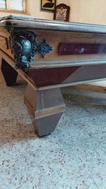 Biliardo tutto originale buche strette corredo 4 stecche bilie numerate triangolo gessetti bilie boccetta il biliardo è stato restaurato completamente a dicembre 2024 gomme delle sponde nuove il restauro del mobile lucidatura a cera possibilità di montaggio panno nuovo e trasporto a parte