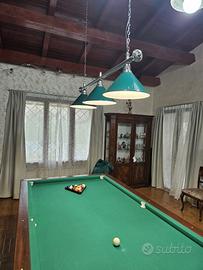 vendo per conto di un amico il biliardo in foto completo di telo,lampadari,rastrelliera, stecche e palle da biliardo .