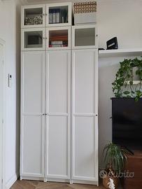 Vendo per trasloco arredo librerie e mensole coordinate IKEA. Colonne serie Billy con ante Oxberg e mensole serie LACK, soluzione classica ed elegante sia per soggiorno che ufficio No incluso: TV e baule