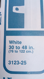 Binari made in U. S. A. di alta qualita', di facile montaggio con istruzioni, premontati ma completamente smontabili, allungabili color panna da 76cm a 122cm e sempre allungabili e regolabili color bianco da 80cm a 140 cm.