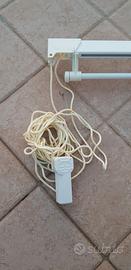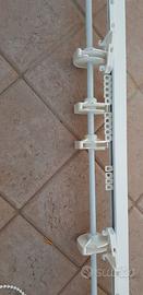 Binario Bastone Tenda a Pacchetto Con Doppio movimento apertura laterale sia a destra che sinistra. Avvolgimento a destra. Con 4 calate, misura 119 cm. Montata per provarla e poi riposta. Allego 4 pesi per tenda