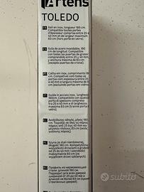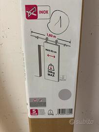 Binario per porta scorrevole esterno muro. Accaio inox spazzolato. Lunghezza 180cm. Nuovo, mai utilizzato. Ottima qualità.