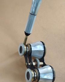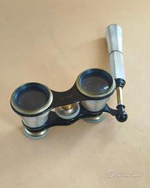 Binocolo antico da teatro in ottone e madreperla. Asta telescopica. Misure chiuso 12 x 5 x 5,5 cm . Asta allungata 29 cm . PERFETTO STATO. INFO 3495611398