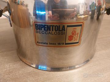 LaBipentola Beccalossiè uniconico oggetto da cucina vintage prodotto dall'aziendaBeccalossi Giovannidi Lumezzane (Brescia) tra gli anni '50 e '60. Si tratta di un innovativo sistema di cottura multifunzione inacciaio inossidabileche, all'epoca del suo lancio (presentato anche alla Fiera Campionaria di Milano nel 1968), veniva proposto come una "simil pentola a pressione". Caratteristiche principali Struttura a doppio corpo: Composta da due recipienti sovrapponibili con manici e un coperchio unico. Tre metodi di cottura: Progettata per offrire opzioni di cottura diversificate in un unico ingombro. Design d'epoca: Oggi è considerata un raro oggetto dimodernariatoe un pezzo da collezione per gli amanti della cucina retrò.