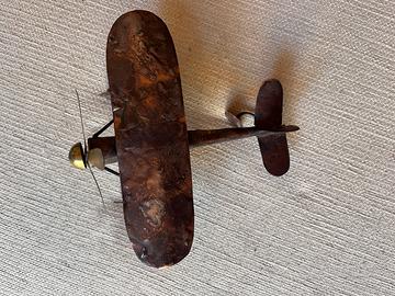 Oggettistica- Biplano in metallo. L’elica è mobile e spingendola col dito gira. Bellissimo regalo per appassionati