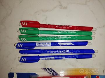 2 biro cancellabili Meccanismo Click Colore nero Biro cancellabile + 3 ricariche Colore verde 3 ricariche rosse 3 ricariche nere Originali Pilot Frixion Nuove nelle confezioni sigillate 2 gomme da cancellare 1 biro rossa vuota 1 biro blu, usata Biro Tratto Cancellik 3 biro blu 1 biro rossa 1 biro verde Marca Fila Tratto Cancellik Sono cancellabili. Nuove, mai utilizzate
