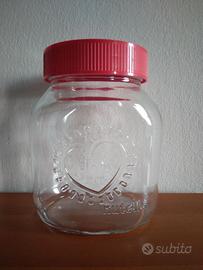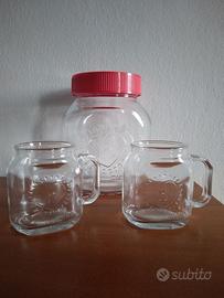 N. 1 biscotteria Nutella in vetro con tappo rosso mai usata. N. 2 tazze Nutella da colazione, in vetro mai usate, ancora nel loro imballo.