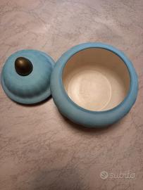 Colorata blu e oro. Misure: tonda, altezza 19 cm, larga 19 cm e profonda 10 cm.