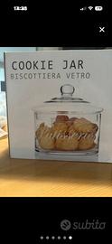 Elegante biscottiera in vetro trasparente, perfetta per conservare biscotti e dolcetti.