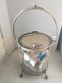 Elegante biscottiera in vetro decorato a smeriglio e metallo. Oggetto d'epoca, molto particolare, ottimo come regalo diverso dai solito o per impreziosire una tavola con un tocco vintage.