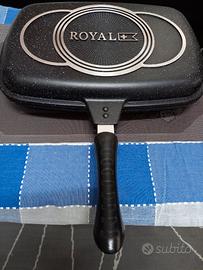 Vendo questa bistecchiera doppia, ossia che si chiude a formare un forno. La bistecchiera è stata usata una o due volte. Per me è troppo grande e comunque non mi piace il tipo di cottura. Misura 36x28xh9cm, quindi diciamo che in una cucina normale occupa 2 fuochi. E' presente anche una guarnizione aggiuntiva. Ovviamente può essere usato come bistecchiera indipendente, senza chiusura, perché le due parti si staccano. E' presente un magnete nei manici che blocca la chiusura. I due elementi della bistecchiera hanno 2 differenti tipi di zigrinatura, visibili in foto, una più liscia e una più spessa.