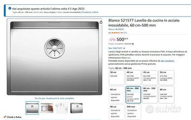 [NUOVO] Blanco 521577 Lavello da cucina in acciaio inossidabile, 60 cm-500 mm