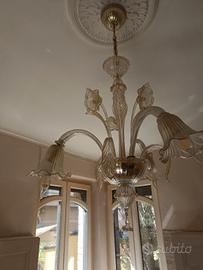 n.7 lampadari e 1 coppia di apliques in vetro di murano in perfette condizioni e con pezzi di ricambio .