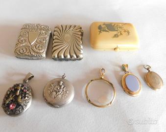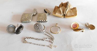 BLOCCO OGGETTINI PER COLLEZIONI - SCONTO 50% portafoto da collo rosario con scatolina portamonete bachelite antico porta fiammiferi spedizione