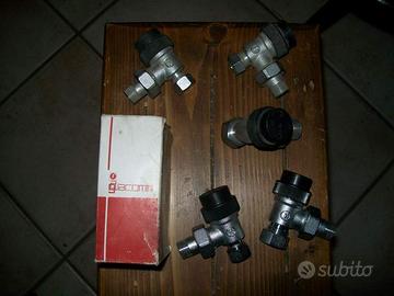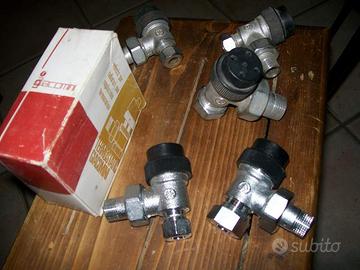 Incluse le valvole termostatiche Giacomini senza testa termostatica, nuove in scatole originali, di cui una è 3/8 rame d12, tre sono 3/8 rame d10 e una ½ rame d14.