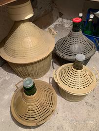 Damigiane , boccacci, dame in vetro per vino, olio, cestelli ecc. 27 pezzi in totale.
