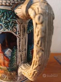 Boccale artigianale da birra tedesco Decorato dettagliatamente con scene della tradizione tedesca