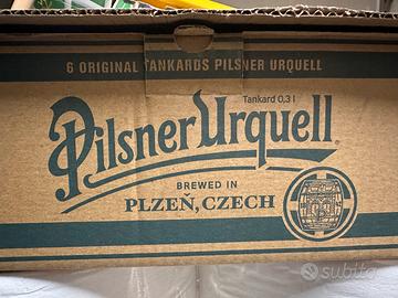Boccali NUOVI di Birra Pilsner Urquell - Set di 12 tazze da birra da mezza pinta 0,3 litri Vendo anche separatamente, cartone da 6 boccali