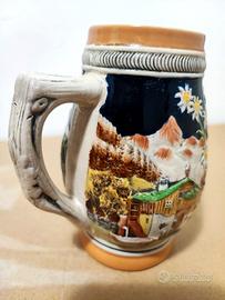 Vendo bellissimo boccale in ceramica smaltata decorato a rilievo proveniente dal Tirolo, perfetto come pezzo da collezione o come elemento d’arredo rustico.