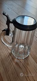 Antico boccale da birra di provenienza tedesca. In vetro con il tappo incernierato `. L`antico boccale da birra tedesco dei primi del 900 si presenta in ottimo stato di conservazione.