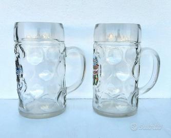 2 Boccali da birra in vetro stile Oktoberfest, 1 litro, lavabile in lavastoviglie. 7 € l'uno, 12 € la coppia.