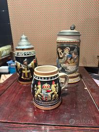 3 boccali di birra originali tedeschi in ceramica. Solo uno dei tre ha un imperfezione sul bordo come da foto, il prezzo competitivo tiene conto di questo