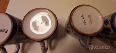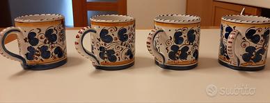 Quattro boccali in ceramica di Faenza decoro galletto romagnolo (h cm. 12 circa), epoca anni 70, in condizioni perfette. Un boccale Euro 10, due boccali Euro 18, quattro boccali Euro 30. Ritiro a mano gratuito