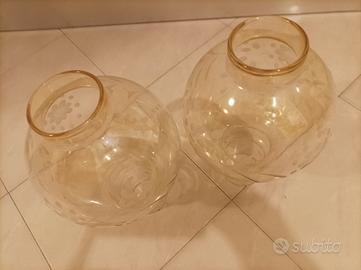 2 bocce in Vetro leggerissimo con incisioni floreale,colore fumé come ricambi per lampadari Vintage o lume.in perfette condizioni.