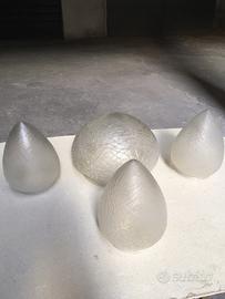 Quattro bocce epoca primi 900, tre piccole foro 6,5 e altezza 14 e una grande foro 13 e altezza 12,5 satinati e con un bel disegno per lampade/lampadario