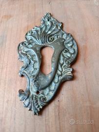 Vendo bocchetta decorativa antica per serratura, originale, in ottone/bronzo, con eleganti motivi floreali in stile barocco.