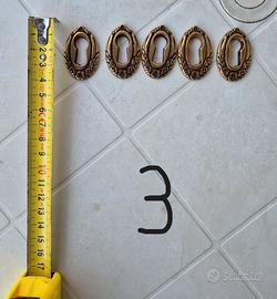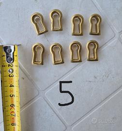 Vendo 5 set di bocchette dorate in ottone per le serrature di mobili antichi / stile classico; ho inserito un numero per ogni set per una più facile identificazione; il costo si riferisce al singolo set.