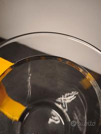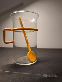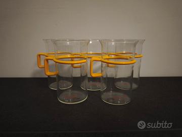 - 5 bicchieri alti da caffè in vetro borosilicato e plastica gialla;