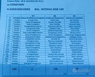 boiler bollitore polywarm 100lt cordivari wsb 100 per produzione di A.C.S con scambiatore ad intercapedine.