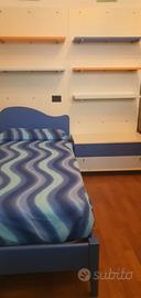 Vendo boiserie con letto singolo completo di rete e materasso e comodino con ruote. Ben tenuto con qualche piccolo segno.